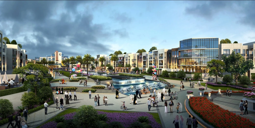 يشتمل المخطط الرئيسي على الأراضي السكنية، المناطق التجارية، والمساحات العامة المنسقة في تصميم متكامل. يتمتع السكان بـ شوارع مرصوفة بالأشجار، ساحات ترفيهية، شلالات، حدائق منسقة، وأرصفة استرخاء خارجية، جميعها متصلة بممرات للمشاة وسلالم غائرة وساحات تجمع، لتشجيع التفاعل وخلق بيئة مرحبة. تعمل الأجنحة، جدران الزينة، والساحات المنسقة كمراكز تجمع طبيعية، مزجاً بين الجمال والوظائفية.