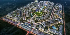 The master plan integrates residential plots, commercial zones, and landscaped open spaces into a harmonious layout. Residents enjoy tree-lined avenues, leisure plazas, water features, landscaped gardens, and outdoor leisure decks, all connected by walking paths, sunken stairways, and plazas that encourage interaction and create a welcoming environment. Pavilions, feature walls, and landscaped squares act as gathering points for residents, blending beauty with functionality.